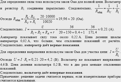 Сопротивление вольтметра равно 10 кОм, а амперметра – 0,4 Ом.