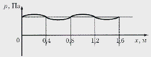 4. На рисунке представлен график зависимости давления воздуха от координаты в некоторый момент времени при распространении звуковой волны. Длина звуковой волны равна