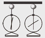 9. На рисунке изображены одинаковые электроскопы, соединенные стержнем. Из какого материала может быть сделан этот стержень? А. Медь. Б. Сталь.